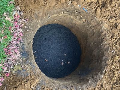穴の大きさや深さを大きくして炭を多く入れることにいやしろち化をパワーアップします。