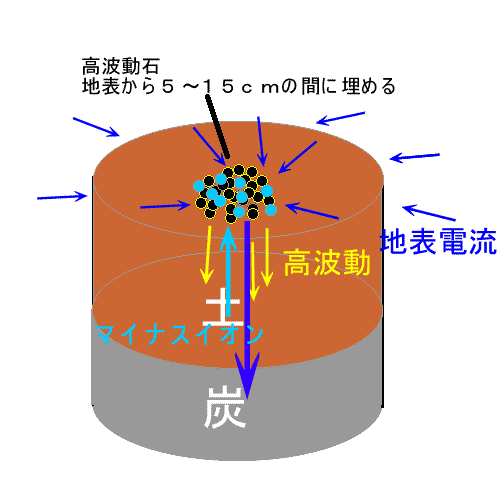 -土地の四方にブラックシリカを埋めることで埋炭の効果を土地の隅々まで波及させます。