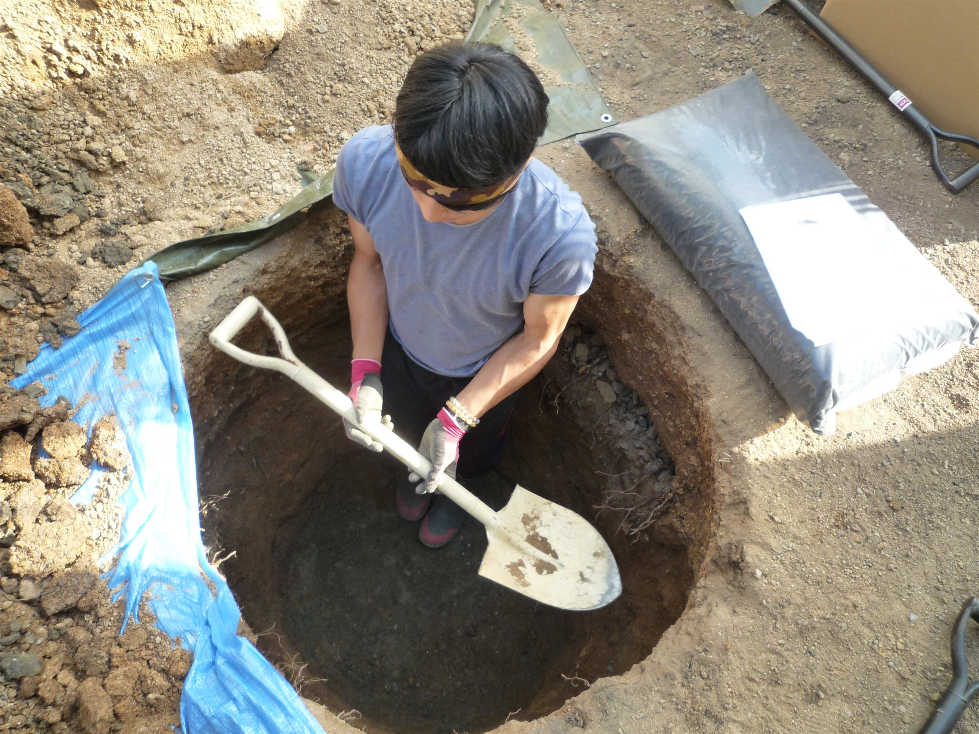 地面に直径1m深さ1mの穴を掘り炭を300L踏み固め流れ入れて